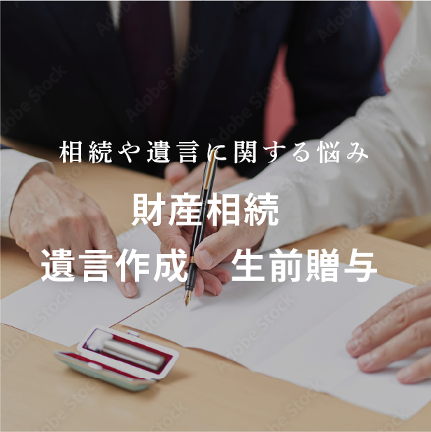 遺言作成のサポートなどを行う「相続遺言」、不動産の登記申請関連の手続きなどを行う「不動産登記」、会社の様々な登記手続きをサポートする「会社登記」、財産管理・介護サービス・施設入所等の契約などをご本人に代わって行う、後見人選任などのサポートを行う「成年後見」、それ以外の「その他司法書士業務全般」。様々な問題解決にスピーディにきめ細かく向き合います。